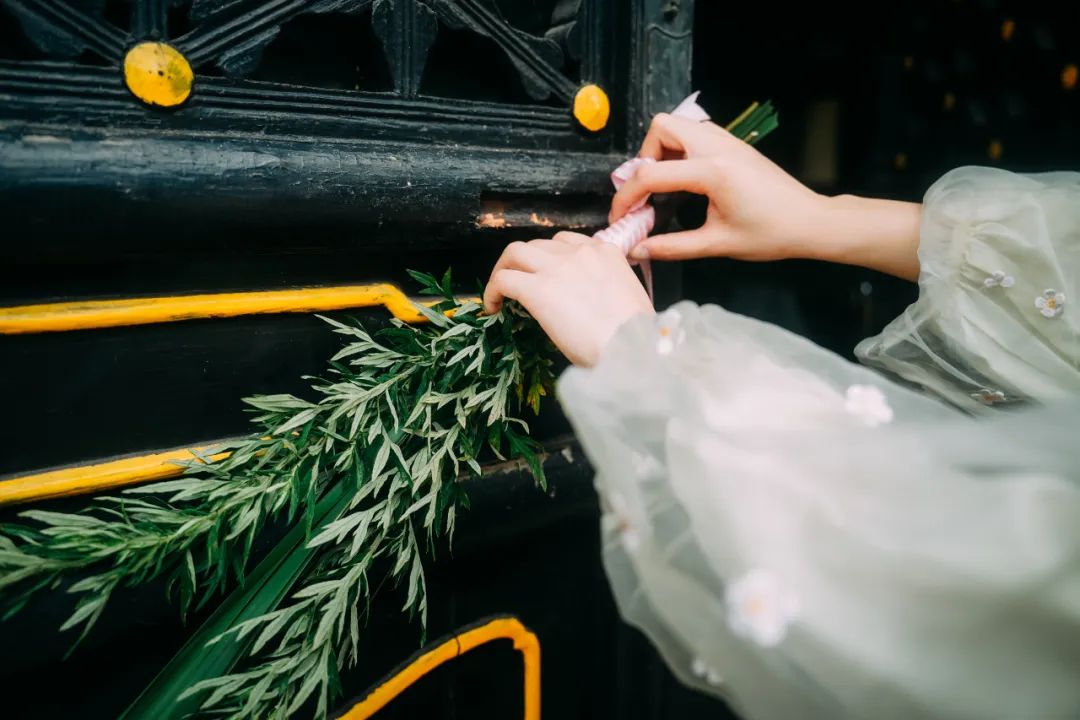 在端午节布置种种可驱邪祛病的花草,来源亦久。人们把插艾草和菖蒲作为端午节重要内容之一。如挂艾草于门,《荆楚岁时记》:“采艾以为人,悬门户上,以禳毒气。