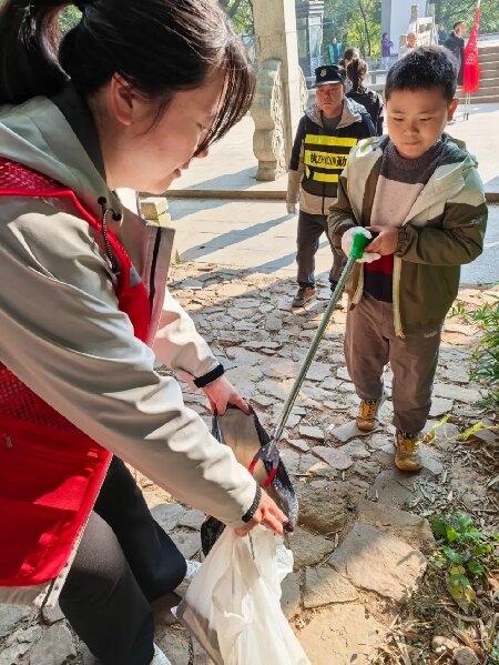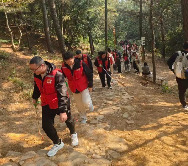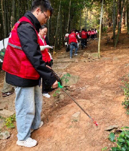 在崎岖的山路上,志愿者们精神饱满地投入到净山活动中。他们手持垃圾袋、夹钳等工具,沿着预定徒步路线,仔细搜寻散落在山路旁、草丛中、树林间的各类废弃物。从塑料瓶、食品包装袋到烟头、纸屑,志愿者们不放过任何一个角落,弯腰拾取的身影成为旺山一道亮丽的风景线。