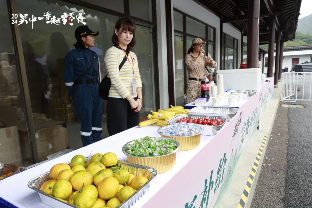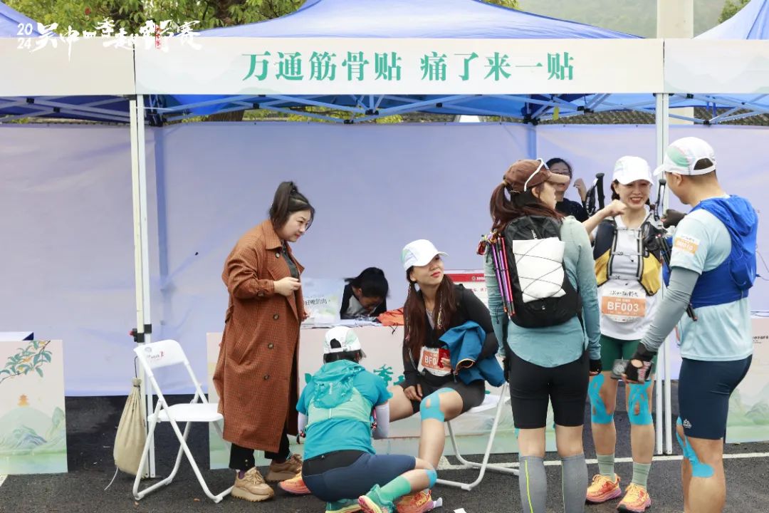 为了应对11月的微凉气温和突如其来的下雨天气,组委会也在赛前领物、赛道补给、完赛补给中,为选手们准备了各类赛事保障物资:暖呼呼的梨汤、姜茶,甜蜜蜜的金庭西山蜜桔、特色枇杷茶包、蜜饯,保护身体的雨衣、肌贴、筋骨贴、暖身贴……同时,在赛场内也安排了全场域、全流程的赛事保障工作人员、专业医疗救援团队,尽力为每一位选手提供一个安全、顺畅、舒适的比赛环境。