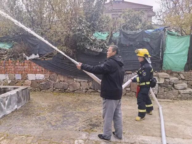 消防员们从迅速甩开水带、精准连接消防栓,到加压出水,整个过程行云流水,随着阀门开启,强劲的水流迅速将模拟火源扑灭。演示结束后,消防员手把手地指导村民们如何使用消防栓、铺设水带,并让大家亲自上手体验,让安全知识在实践中真正“活”起来。