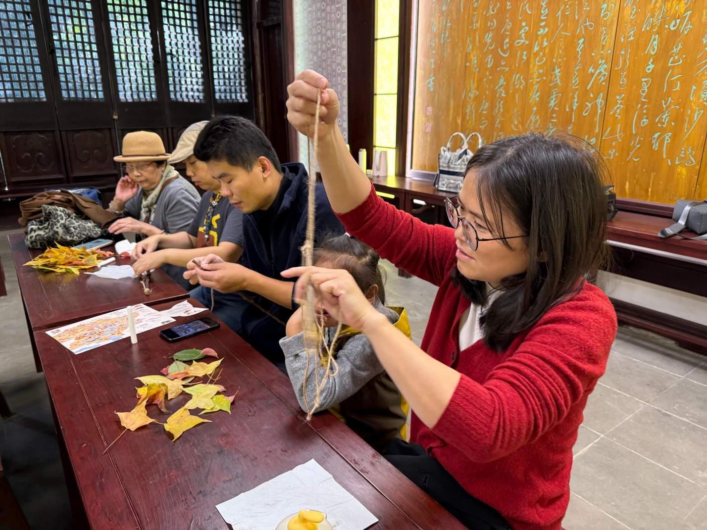 11月2日,苏州市天平山风景名胜区云中书院迎来首场“秋韵风铃”枫叶手作体验活动,25组受邀家庭齐聚一堂,在层林尽染的秋色中开启了一场别具意义的亲子手作之旅。