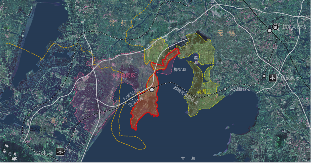 本次规划范围即无锡市滨湖区马山街道——无锡(马山)太湖国家旅游度假区的辖区范围,规划区南、东、西三面深入太湖,由北向南,依次包含十八湾、马圩镇与马迹山三大功能片区,规划区总用地面积约58.9平方公里。