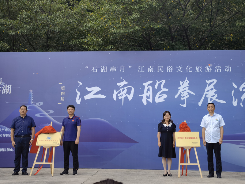 活动中,“苏州市江南船拳传承基地”和“苏州市江南船拳展演基地”正式揭牌。“苏州市江南船拳展演基地”落户上方山国家森林公园,将搭建起江南船拳集中展示交流的平台,推动当代“船拳”非遗项目的保护传承。
