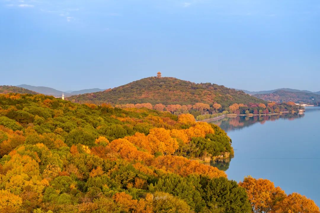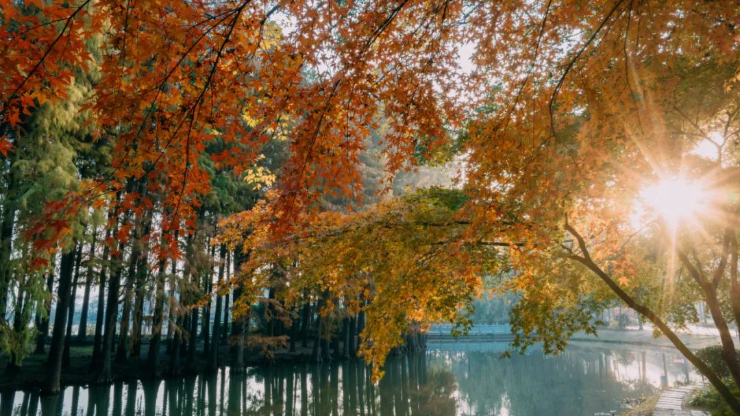 一阵风吹来,满枝金黄的树叶树影婆娑