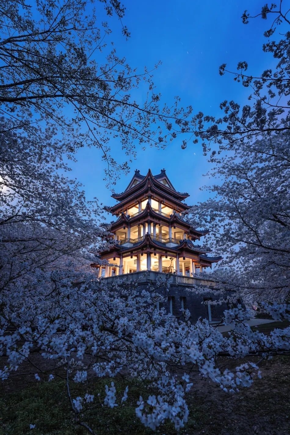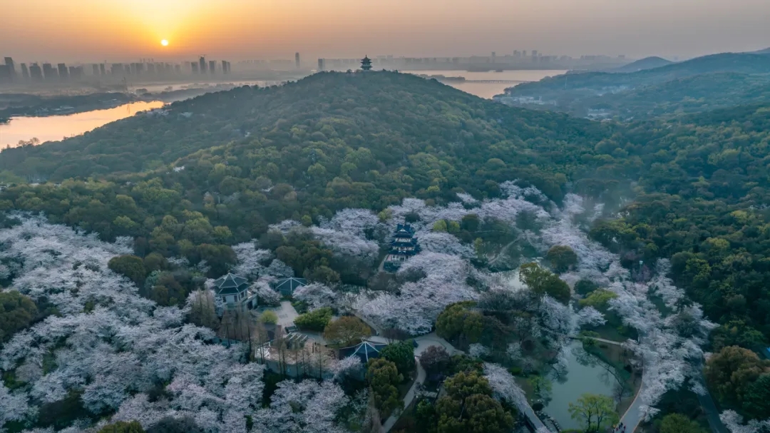 每年的樱花季,早樱、中樱、晚樱各品种独揽芳华。"晨赏、日赏、暮赏、夜赏"的赏樱四部曲,全天候呈现樱花千姿百态!这里的长春桥、樱花谷、赏樱阁,每一处都是春天最浪漫的诗意栖居。当夜幕降临,华灯初上,夜樱与湖光相映成辉,灯明樱飞,一场夜樱奇妙夜在此开场。