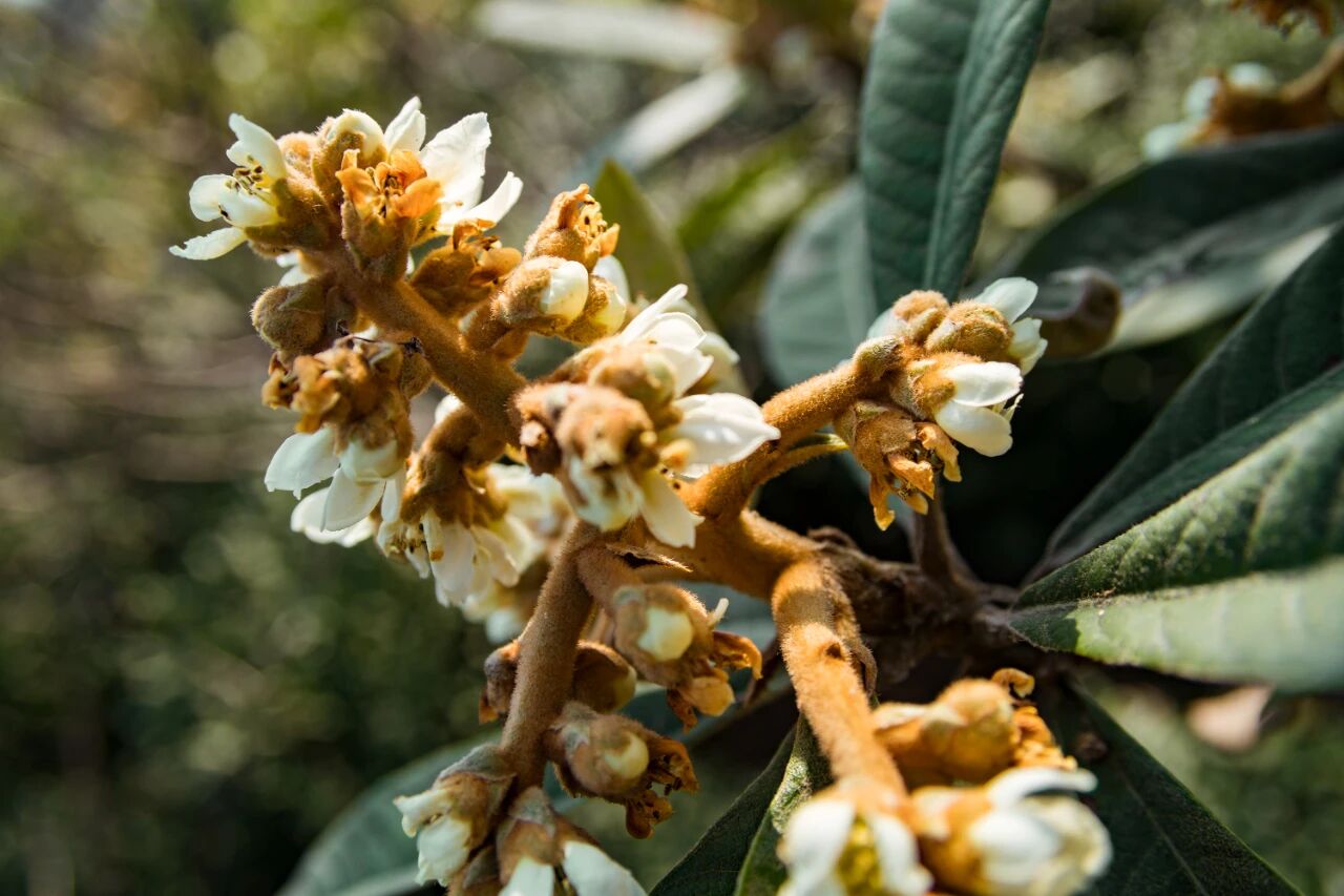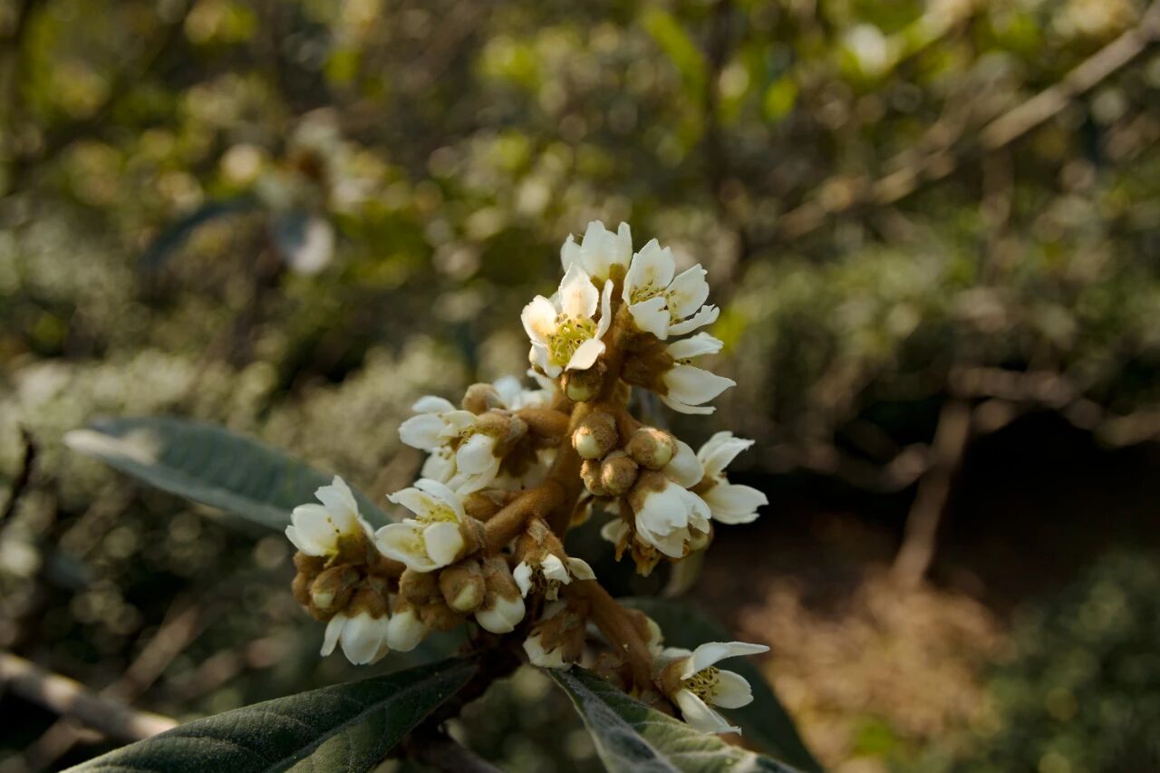 走进西山岛的村落与山野,随处可见成片的枇杷林,枝干上一串串米白色的小花挤挤挨挨,像碎雪点缀在枝头,花瓣小巧玲珑,五片花瓣围拢着淡黄色的花蕊朴素却不失精致,凑近细看,还能发现花瓣上覆着一层细密的绒毛,摸起来柔软又细腻。枇杷花的香气,是一种清润甘醇的香,混着草木的清新与泥土的温润,在空气中轻轻弥漫,偶有蜜蜂循着花香而来,在花丛中忙碌着采蜜~