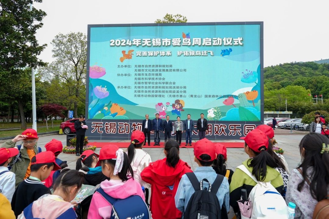 在春意盎然的四月,我们迎来了一年一度的爱鸟周活动。每年4月20日-4月26日为江苏省爱鸟周,进一步弘扬生态文明理念,增强公众对鸟类和生态环境的保护意识,无锡动物园将结合爱鸟周开展“观鸟、爱鸟、护鸟”等系列活动。今年爱鸟周的主题是“完善保护体系,护佑候鸟迁飞”。这一主题旨在强调对鸟类,特别是候鸟保护工作的重要性,以及完善保护体系的必要性。4月20日上午,在无锡动物园大门广场进行了“2024年无锡市爱鸟周启动仪式”。无锡市自然资源和规划局、无锡市生态环境局、无锡市科学技术协会、无锡市哲学社会科学联合会、无锡市自然资源和规划局滨湖分局、无锡市自然资源和规划局梁溪分局、无锡市动物园管理处相关领导出席了此次活动。