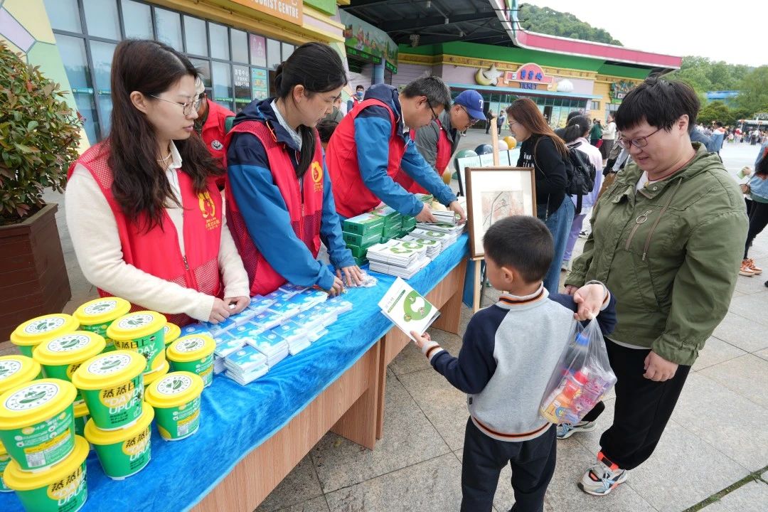 当天爱鸟周现场,科普志愿者向来园游客科普了:爱鸟周的由来、鸟儿们的分类学、千奇百怪的鸟巢、多彩的鸟蛋与鸟宝宝、路边的小鸟不要捡、江苏省新增野生动物名录等。同时,志愿者也跟游客深入浅出的对《江苏省野生动物保护条例-节选》、《中国野生动物保护法-节选》、《中国野生动物保护条例-节选》等进行了普法,扫除了一些法律盲区。金刚鹦鹉、小羊驼以及黑猩猩姐弟糖糖和糖豆也纷纷来到活动现场,助阵此次爱鸟周活动。只见黑猩猩宝宝糖豆化身小小宣讲员,为来园的小朋友们纷发了宣传册《无锡境内国家级保护鸟类》。无锡这座生态宜居的城市,拥有丰富的鸟类资源,据不完全统计,无锡境内野生鸟类达350余种。从清晨的鸣唱到傍晚的归巢,鸟类为这座城市带来了无尽的生机与活力。它们在维护生态平衡、促进生物多样性方面发挥着不可替代的作用。