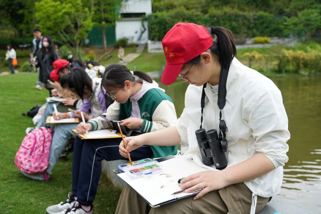 活动当天,动物园还邀请了画家和绘画爱好者来园写生。在写生人群中,年龄最大的有60岁,最小的才10岁,他们齐聚在美丽的孔雀溪,将孔雀之美、天鹅之雅、仙鹤之姿描绘于纸上。在孔雀溪,除了欣赏孔雀的美丽,动物园还为孔雀提供了多种活动设施,如宽敞的活动区域、遮荫的树木、栖架、水池、雾森等。这些设施不仅为孔雀提供了舒适的生活环境,还使它们能够展现更多的自然行为,也让游客能更直观地了解孔雀的生活习性。在创作过程中,画家们仔细观察鸟类的形态、羽毛、动作和表情等细节,他们运用不同的绘画技巧和风格,用国画、水彩、写生等各种表现形式,用手中的笔绘制了一幅幅春之景、鸟之语。