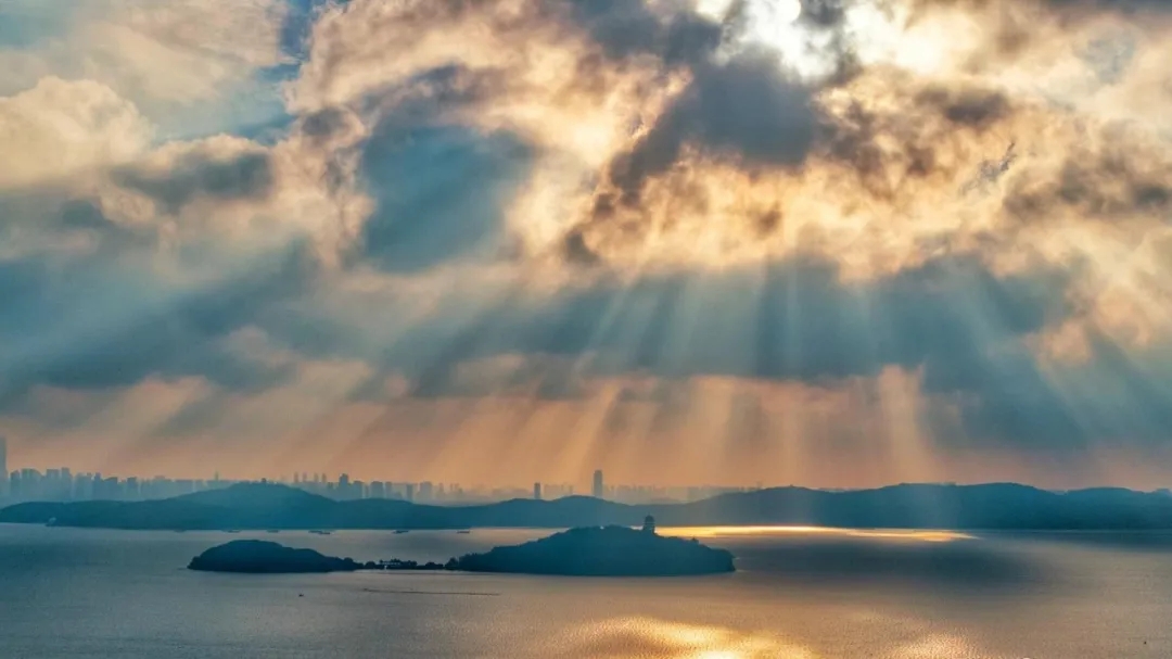 当夕阳的余晖洒满湖面,太湖仙岛仿佛被镀上了一层金色的光辉,变得愈发神秘而迷人。夕阳的余晖洒在湖面上,太湖仙岛上的亭台楼阁、小桥流水,也在这金色的光辉中显得更加古朴与典雅。