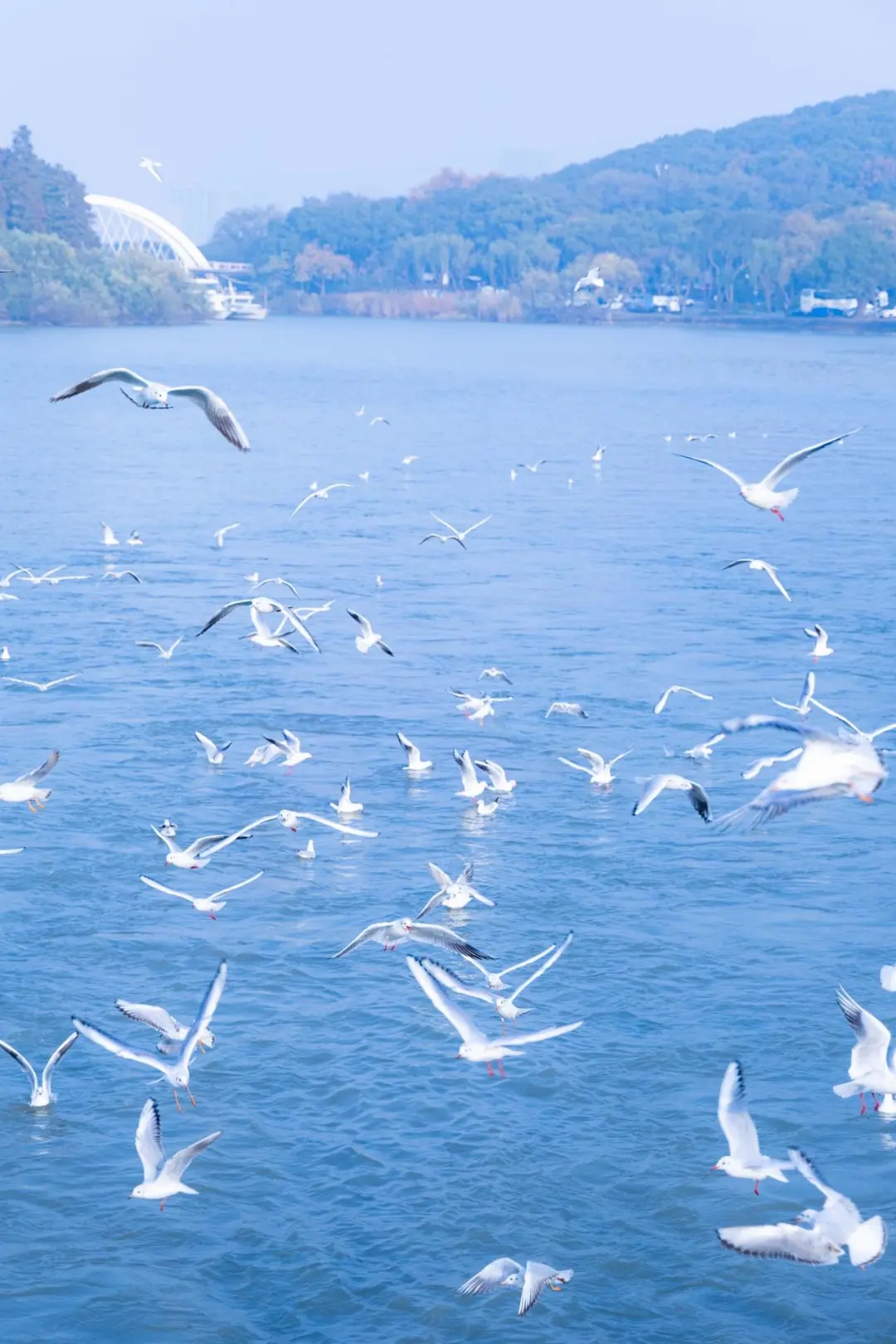 每年冬季都有一群来自西伯利亚的红嘴鸥来这儿过冬,为这片太湖之滨带来了一抹独特的生机与活力。它们在湖面上翩翩起舞,宛如白色的精灵,与波光粼粼的太湖相映成趣。红嘴鸥的到来,如同冬日里的一场浪漫邂逅!