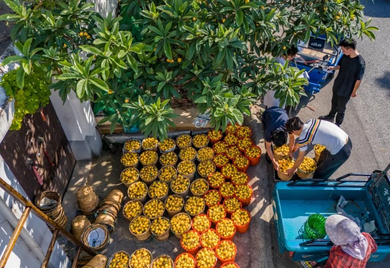 近年来,东山镇枇杷产业规模持续扩大,种植面积已达2.9万亩,主要分布于山区各村及鱼池埂等地。2024年,东山枇杷迎来大丰收,总产量超10000吨,物流寄件195.7万单。