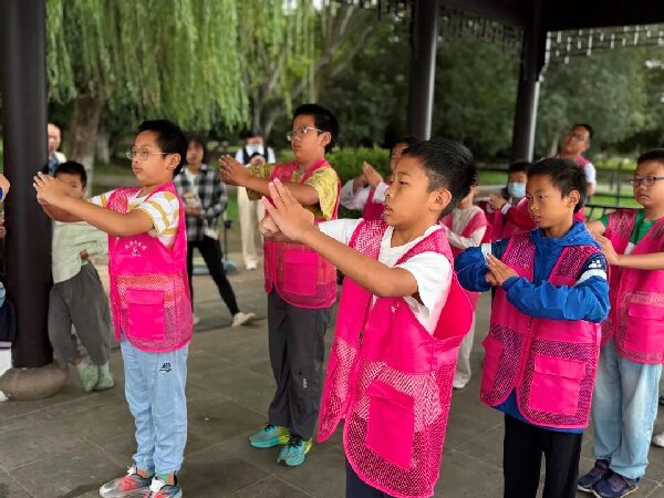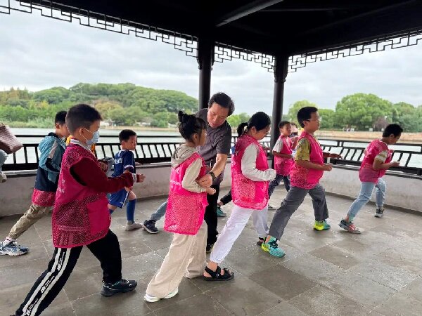 体验非遗魅力。活动最后,迎来大家最期待的船拳体验环节。吴老师亲自示范,耐心细致地讲解动作要领。孩子们紧跟老师的动作认真模仿,抬手、出拳、转身,一招一式虽略显稚嫩,却格外专注投入。在亲身体验中,孩子们真切触摸到了江南船拳的独特魅力,感受到了非遗文化鲜活的温度。