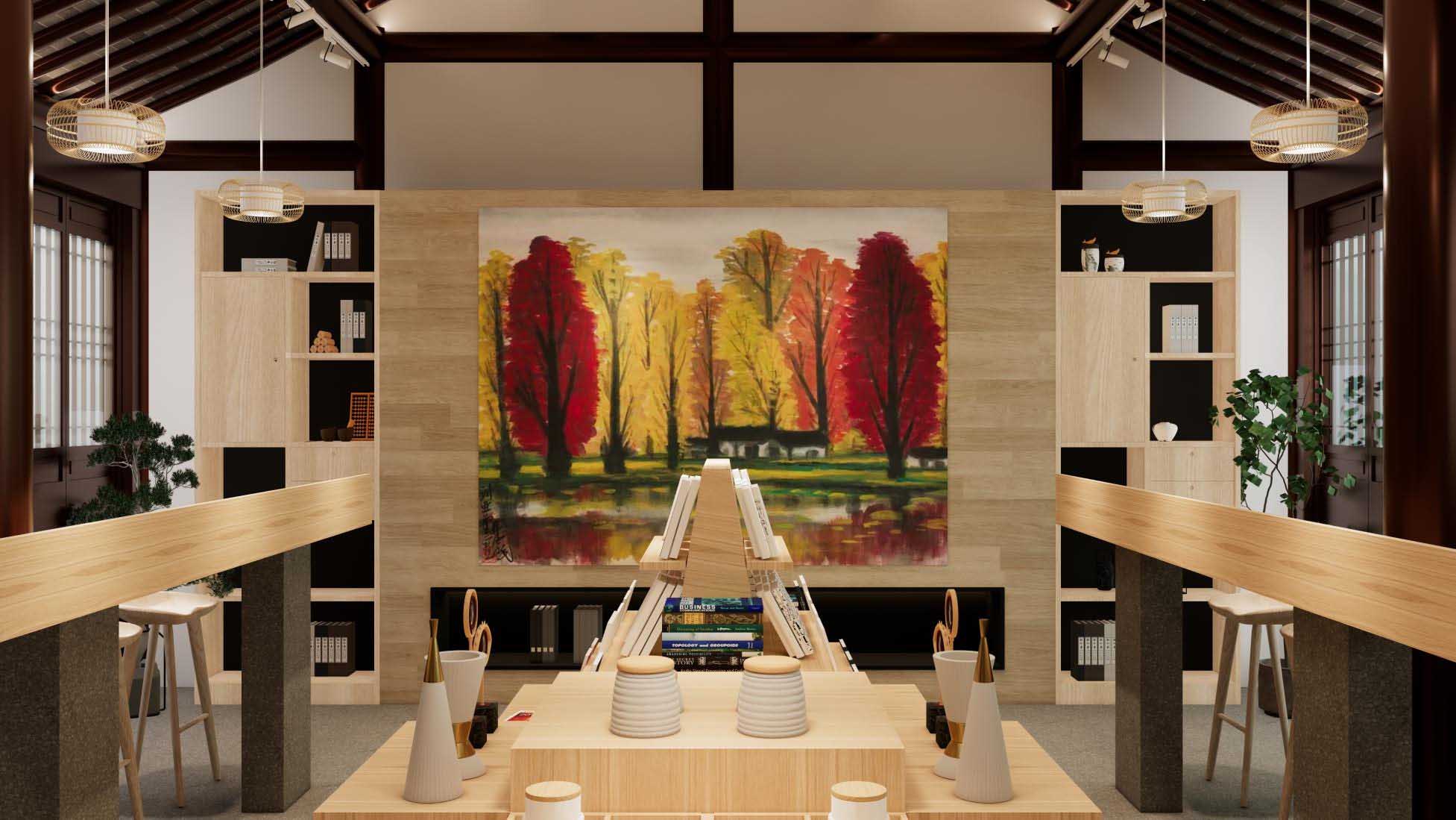 白云山房区域位于登天平路西侧,处在核心景区的中心位置,该业态定位及整体氛围目前已基本确定方向,定位为红枫主题精品休闲饮品店,在产品和消费环境中融入以红枫为主的审美情调,并考虑将天平山历代名人书画、天平红枫主题旧影等文化元素融入其中,让游客在消费的过程中感受天平山文化的深厚历史文化,成为景区对外展示文化形象第一个重要窗口,同时在苏州的同类型业态中树立自己的特色,发挥“网红效应”,拉动消费提振经济。(设计效果图不代表该经营点最终风格)