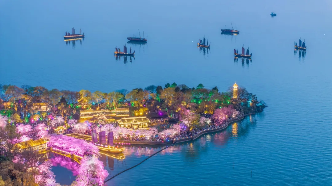 登临赏樱楼,远眺碧波荡漾的太湖,近观樱花如霞似锦,层层叠叠、美不胜收。在这里每一口呼吸都是花香,每一次凝视都是风景。在这片被樱花温柔包裹的土地上,「遇见江南」诗韵秀不仅是一场视觉与感官的盛宴,更是一次心灵的触碰与对话。