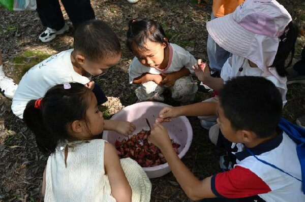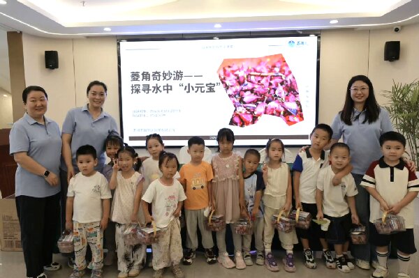 随后,在石湖之窗开展“菱角奇妙游——探寻水中‘小元宝’”自然教育科普课堂”。党工团代表担任志愿者,通过谜语互动、实物观察、故事讲述和剥菱实践等环节,带领孩子们辨识菱角品种、了解生长习性、体验采摘艰辛、感悟劳动价值。课堂气氛活跃,亲子协作默契,在动手实践中传递了珍惜粮食、感恩自然的理念。