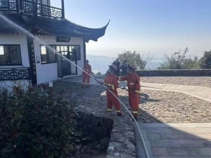 森林消防和城市消防两支队伍分别在缥缈峰景区和古樟园景区开展灭火演练,加强防火队员技能及体能训练确保每位队员熟悉山区路线、水池方位等救援信息。
