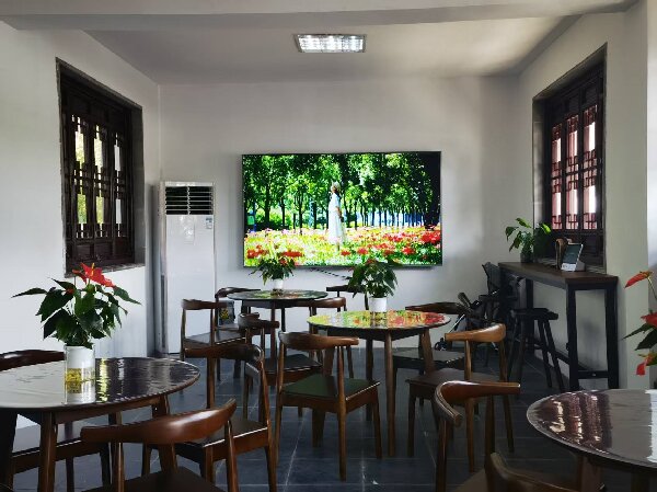 更新软硬件设施,提升环境形象。启用崭新的咨询服务台,新增实木桌椅与观景吧台,显著提升了休憩环境的舒适度。更换大尺寸电子显示屏,动态展示景区四季风光宣传片;桌面以绿萝、红掌等绿植进行美化,营造充满生机的室内环境。